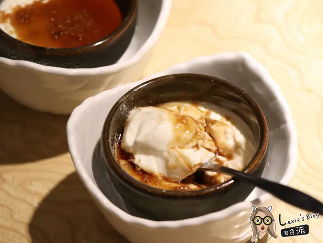 最後的甜點是黑糖豆腐奶酪,上面撒上花生粉