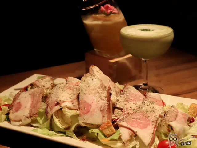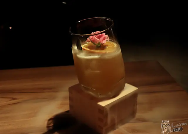 白蘭地的層次與橙酒的融合家上悄悄話自製糖漿,視覺上挺華麗的一杯調酒,送來有乾冰不斷冒出來,上面更美美的漂浮福著一朵玫瑰花。但不要看它嬌嫩柔美,其實酒精濃度不低,使用白蘭地當基底,配上橙酒與橙片,後味是滿清楚的水果香氣,泡越久水果味道會越明顯。