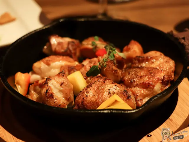 鐵鍋雞也是重口味前菜,雞腿肉皮酥肉嫩、配上黑胡椒香氣十足。送來時還會淋上特製醬汁,在鐵鍋上發出沙沙沙的滾燙聲,頗有驚喜、用心的一道菜。