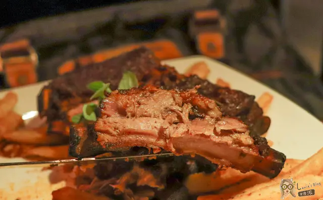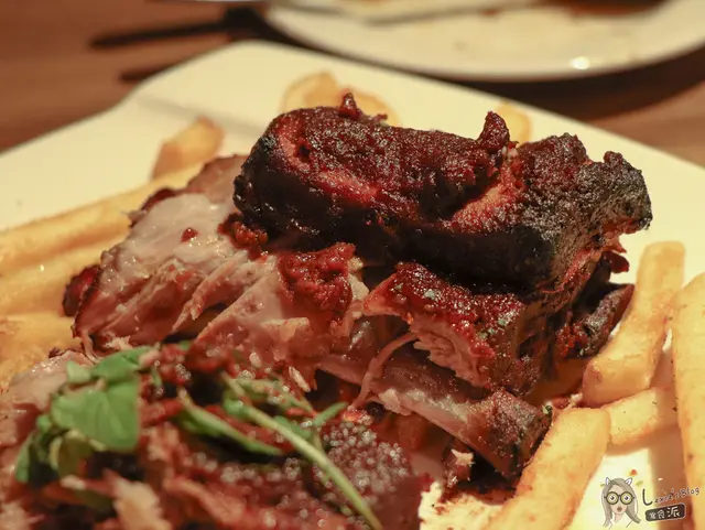 豬肋排醃漬非常入味,滿口香料感還有點啤酒味,肉質軟嫩好切,飽水不柴,且很容易就可以骨肉分離。另外炸薯條品質也不錯。