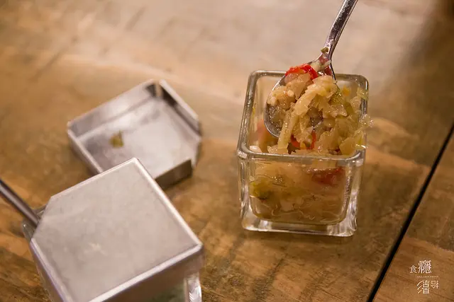 餐桌上都有放置的酸菜盒,可以適量加入牛肉麵中調味,個人覺得味道平平,沒有太深刻的表現。