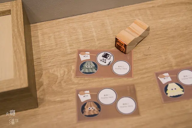 選好配料之後,就拿起這個超級可愛的配料印章,蓋在想搭配的冰品口味小卡上頭,