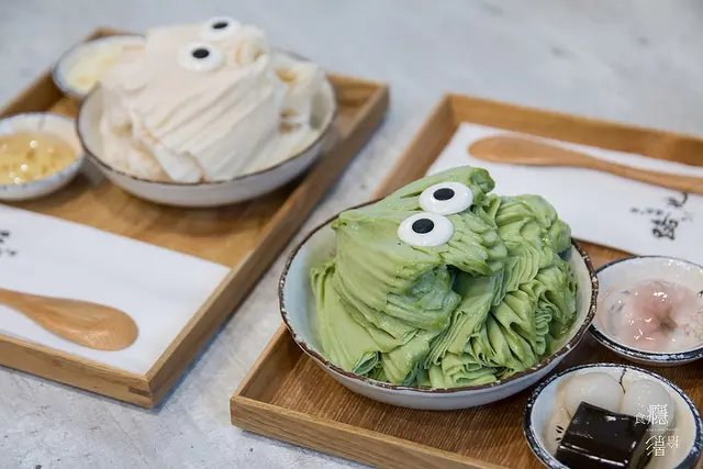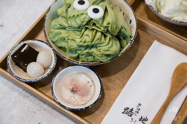 白玉口感有嚼勁,適合與抹茶冰一起吃,而我喜歡一旁的焙茶凍,吃起來有著淡淡茶香,很清爽。