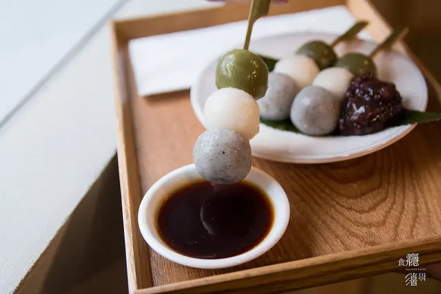 我們點了可愛的三色糰子,糰子的口感Q軟,可以沾一旁的日式醬油或是裹上紅豆泥品嚐,是很適合搭配熱茶慢慢享用的點心。
