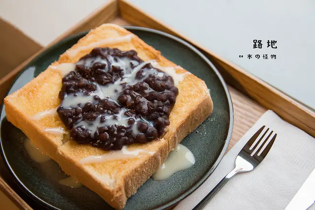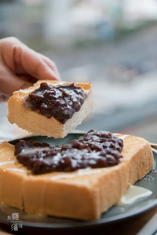 在抹勻奶油的厚片吐司上擺著滿滿的紅豆泥,再淋上煉乳或是奶油,是在名古屋風行的早餐美味。