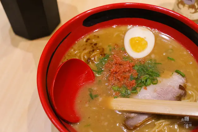 ▲拉麵上頭那塊紅色末狀的是麵酥,就是炸天婦羅的外層麵衣,