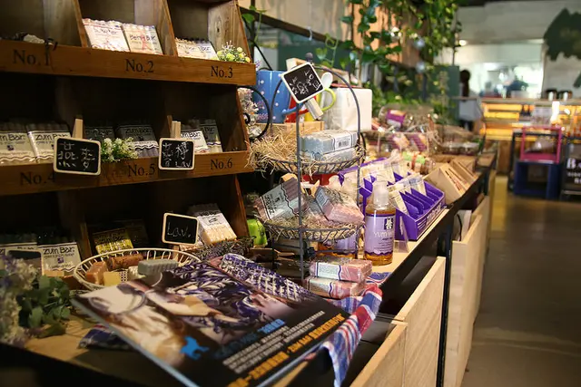 走道兩側擺放著各種商品,有生機食物也有造型精緻可愛的器具小物