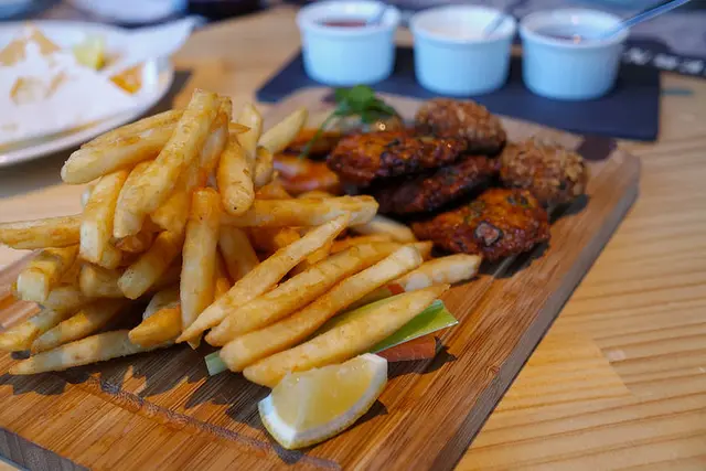 ▲雷蒙綜合炸物(薯條、雞翅、蝦餅、魚球)