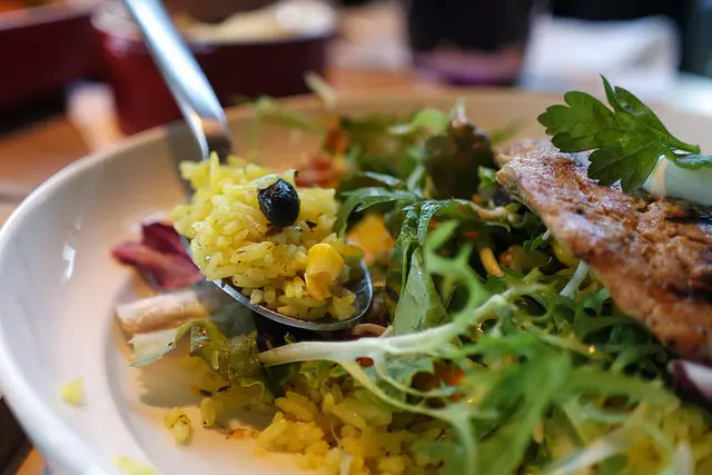 ▲單吃香料飯的味道倒是清淡了些,後來才發現是要加上一旁附的番茄莎莎醬!