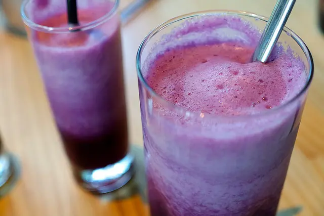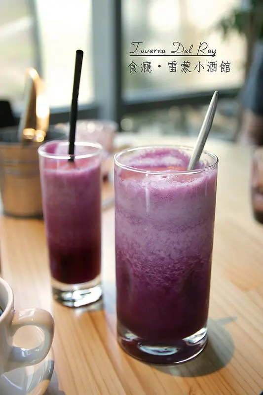 這杯紫色的蔬果汁就是用新鮮的紫菜榨成的!