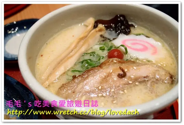 拉麵裡有附叉燒肉一塊、筍乾、蔥和白芝麻