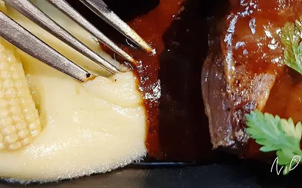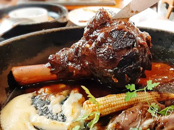 羊肉本身表面已經吃透滿滿的紅酒醬,我覺得不需要特別再去沾抹盤底的醬汁