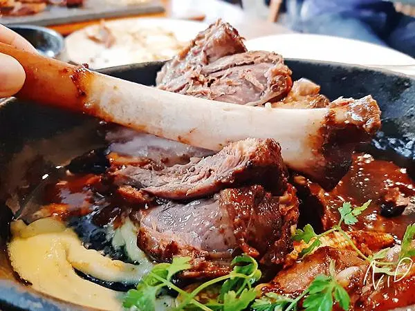 ▲帶骨的羊膝肉,用刀子很容易就能切到中央的骨頭