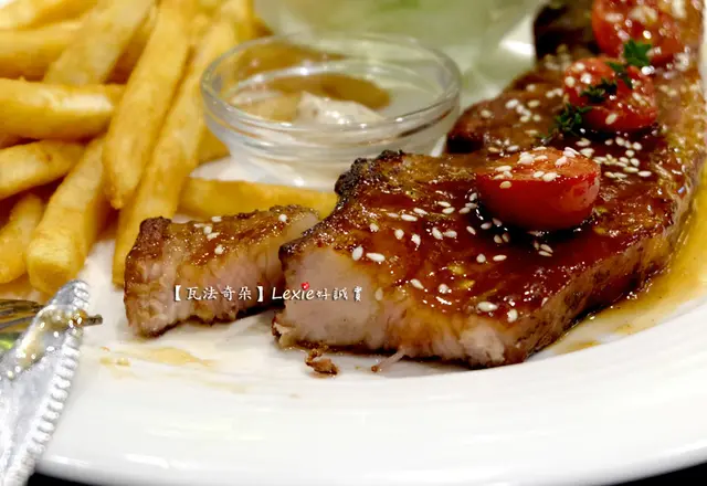 上面配上考過的番茄與洋蔥 牛排醬汁濃郁 肉質比我想像中的要軟嫩許多