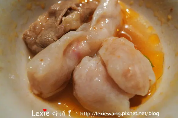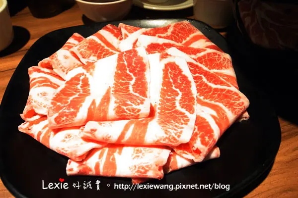 看起來就是一般豬肉 但其實他的一般豬肉也勝過很多火鍋的店的豬肉 厚度蠻夠 肉也不柴 已經算是有7.5顆星的肉質