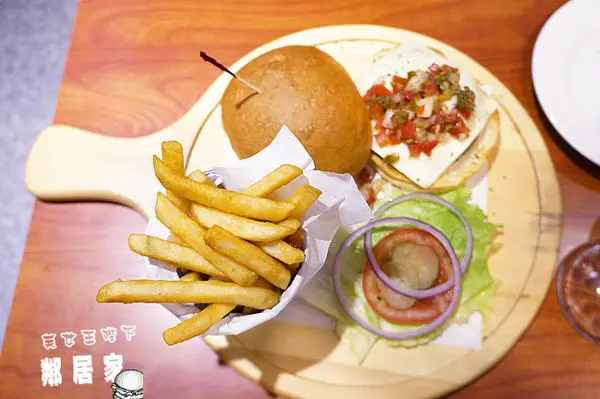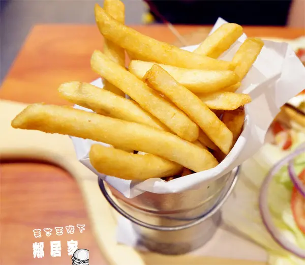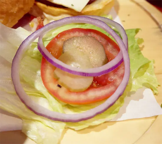 新鮮洋蔥圈加上爽脆的生菜跟番茄片