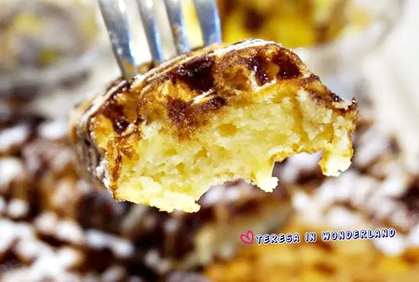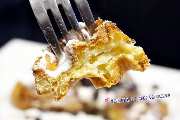 用叉子將鬆餅拿起的瞬間,大食女也馬上感覺到這鬆餅的酥脆度!叉子輕碰鬆餅外衣,可是會有ㄎ一ㄤ ㄎ一ㄤ聲響的呢!