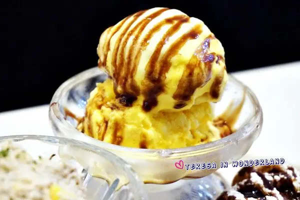 鬆餅也可搭著一旁的香草、及芒果冰淇淋作夥食用