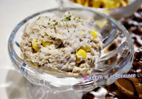 但由於鬆餅上,大多都撒有糖粉及巧克力醬,大食女覺得這樣跟鮪魚玉米搭起來蠻奇妙得...甜鹹滋味實在太微妙:S