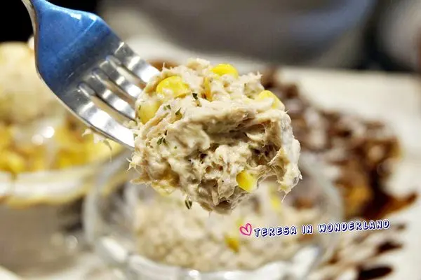 一旁同時附有鮪魚玉米,可搭著吃