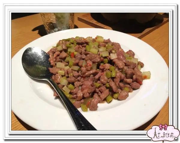 剁椒牛肉 (附生菜) NT300元。 辣度1