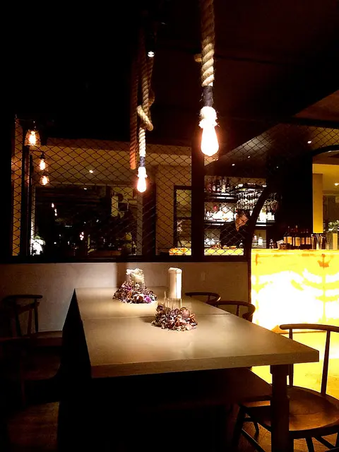 每桌頭上的吊燈採用新潮又有創意的設計:大繩索製的吊燈!