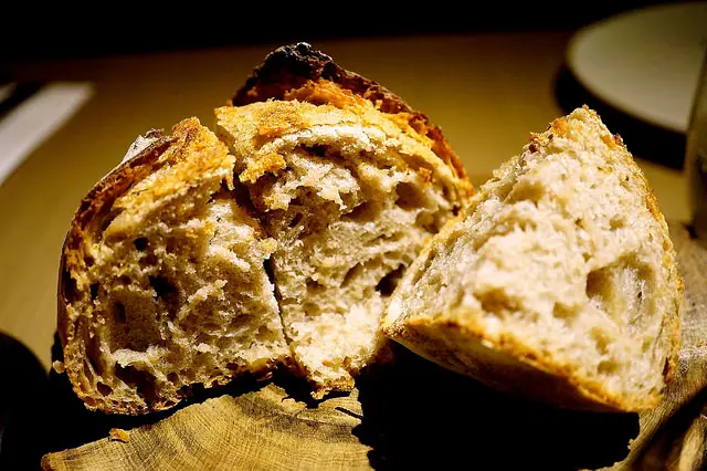 有彈性,皮脆心軟,活的麵包組織!