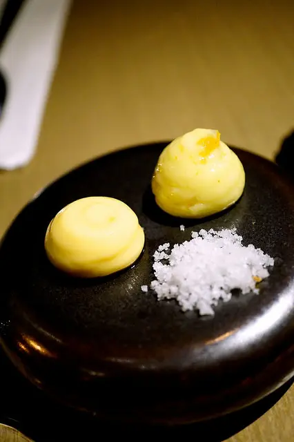附上搭配麵包的是柚子奶油、牛油、海鹽三種調味料。