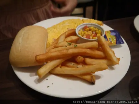 麵包剛上來的時候還熱熱的喔!而且薯條分量也很多呀~吃完會很飽的!