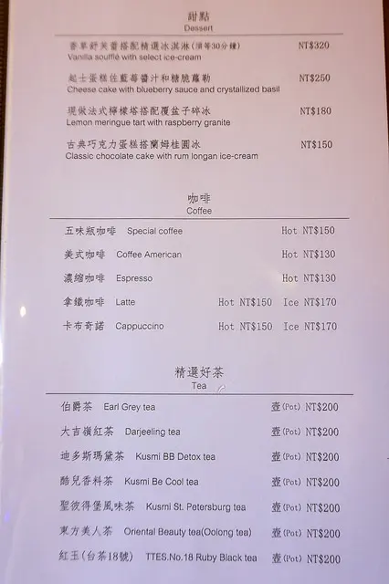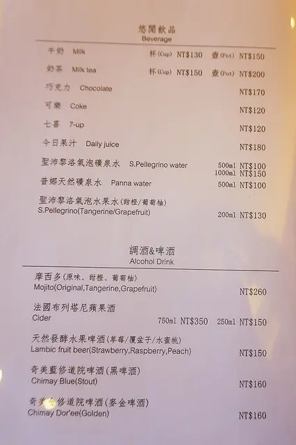飲料的品項也多,包括茶飲、咖啡,和不可或缺的酒類