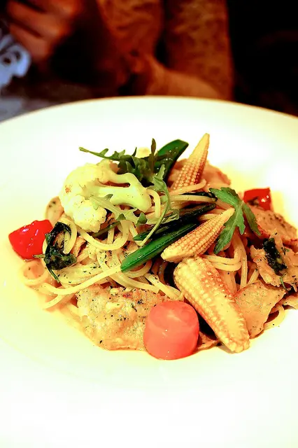蒜香雞汁風味義大利麵與碳烤松阪豬 (NT.350)