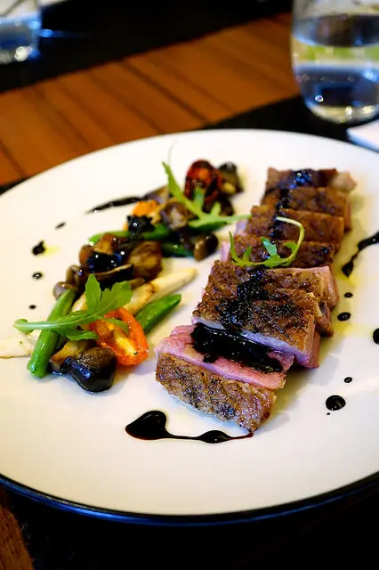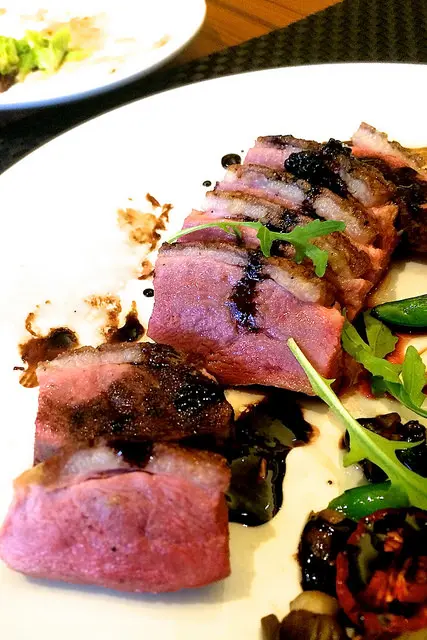 爐烤宜蘭豪野鴨胸搭蒜香草菇佐覆盆子醬汁 (NT.550)