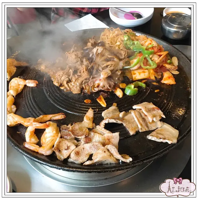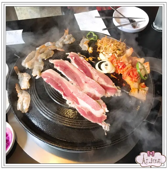 泡菜跟豆芽會放在烤盤上烤!!! 份量跟高雄差太多了~~~