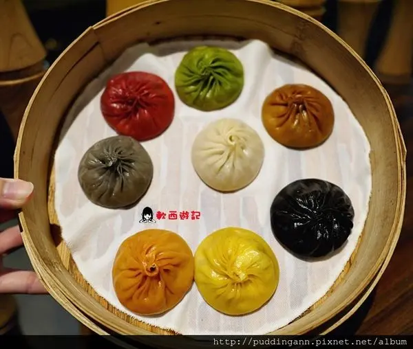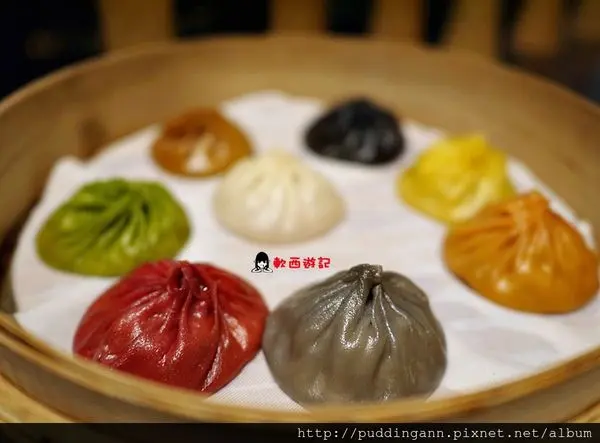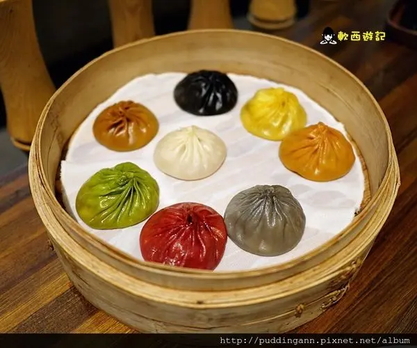 八種不同口味不同顏色的小籠包在同一籠裡面超繽紛啊~