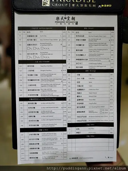 另外還有圖文並茂的彩色版本~軟西拍的樂天皇朝菜單