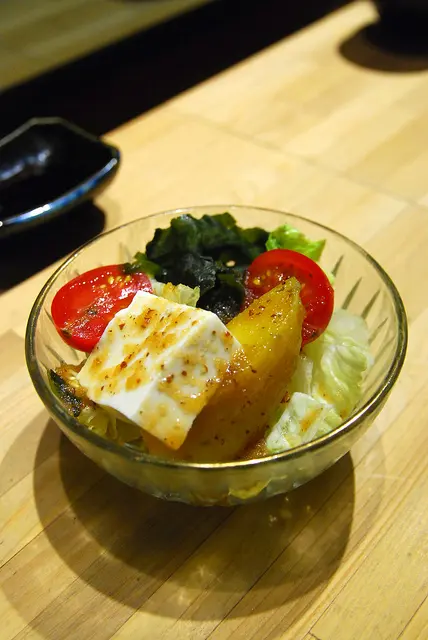 除了生菜外,還有豆腐、地瓜,佐以胡麻醬,新鮮爽口