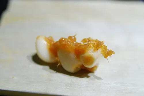 刻畫成網狀的紅魽肚,剛好讓醬料融匯得恰到好處