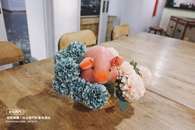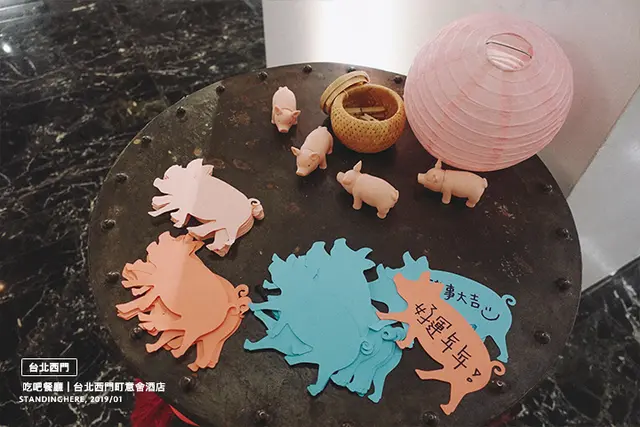 當時因為要過年了,佈置了好多小豬的元素,超可愛~