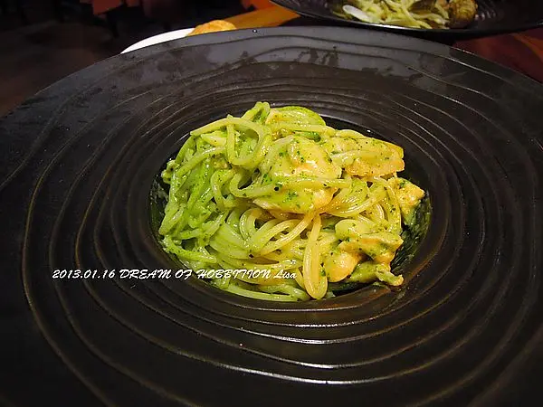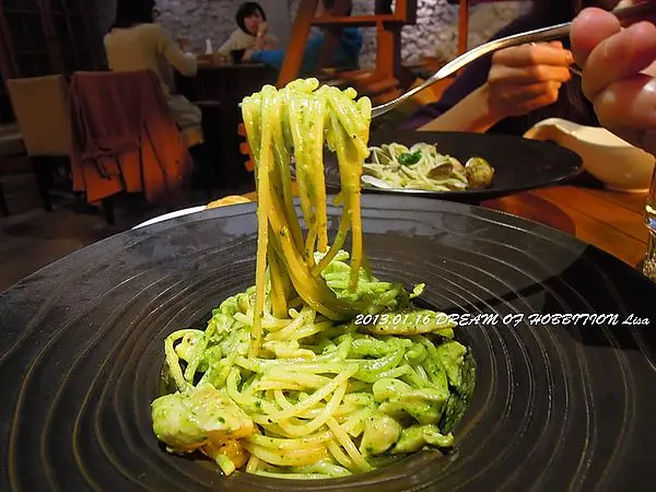 我有吃了一口,麵的感覺還是比較偏乾,但我個人沒有很愛青醬,所以不方便做評論。