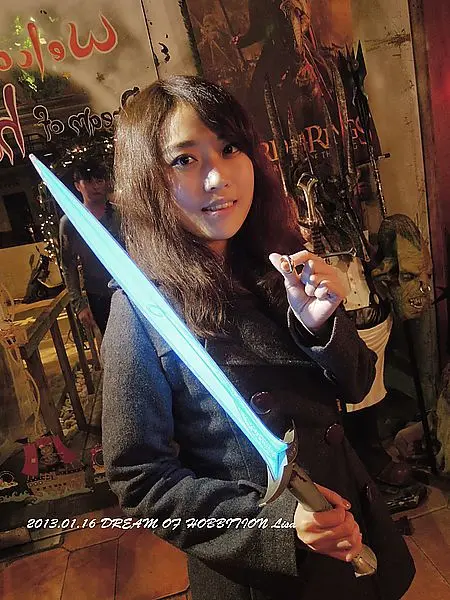 老闆娘一開始秀這把劍給我們看的時候好像沒電了,他很緊急的招喚老闆去換電池,後來就把發光劍放到我們手中,真的很好客。