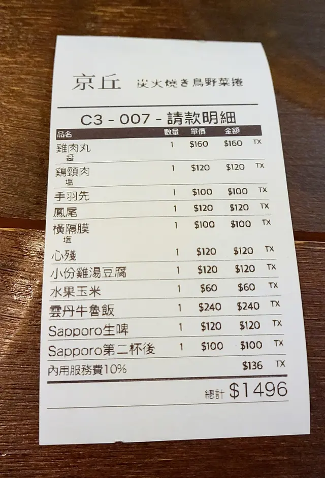 [食記] 台北-京丘・炭火燒鳥專門店 三高吃漢Level 62021-12-2360 瀏覽 關注 照片記錄:人均750。 前陣子肺炎肆虐期大概是因為備料關係,預訂什麼都從缺(香魚甘露煮、招牌的野菜卷..), 與朋友兩人就簡單點些烤串,炭燒風味的呈現偏薄(雞翅還行),總之期待酉志重新開業。(雞湯豆腐,吃起來有點像宜蘭糕渣)😂(雞頸肉)(橫膈膜)(雞屁股,還ok~)(心殘)(雞翅,相對不錯)🙂(雞肉丸,規矩,做出區隔很重要..)(水果玉米)🥴(雲丹牛魯飯,嗯...雖然頑居酒整體印象也不深,但是我喜歡它的牛滷飯)以上食評乃用戶個人意見 , 並不代表OpenRice之觀點。讚好分享[食記] 台北-京丘・炭火燒鳥專門店 京丘・炭火燒鳥專門店 https://s.openrice.com/cHKTm026ue200檢舉 張貼 評分4味道4環境4服務4衛生4抵食用餐途徑Dine In