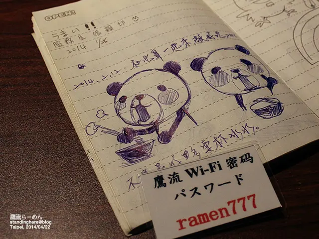 桌上除了放置筷子、一些調味料,還有一些雜誌的報導...最有趣的就是還有一本留言本, 是給客人寫寫畫畫的!打開一看, 裡面好多人都好會畫喔,留下來的塗鴉都超可愛的!