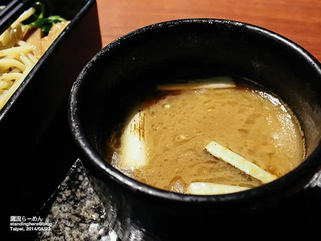 沾麵本人是冷的, 單吃沒什麼味道, 但冰鎮過後口感很Q彈!麵條上面有一點一點的, 是加了蕎麥,有別於其它店吃到的拉麵...