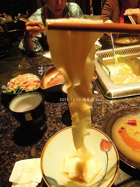 一開始煮還不會太辣,後來越煮越辣,友人就崩潰了XD。海底撈的白鍋有三種鍋底,剛好看到旁邊有一桌大桌的,他們吃四種鍋底拼在一起(好生羨慕)。