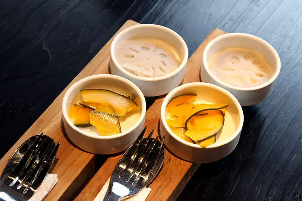 南瓜和蓮藕吃起來酸酸甜甜,味道中規中矩,吃完很快就忘了。