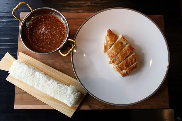 咖哩娘豬、雞搭配的是同一種咖哩,濃郁的咖哩加入多達30種香料,保證一定吃得出香料味,其實咖哩娘的咖哩都有加香料,不愛香料這一味的朋友請自動pass;我和鬆餅太太都覺得咖哩娘雞的咖哩吃起來清爽些。