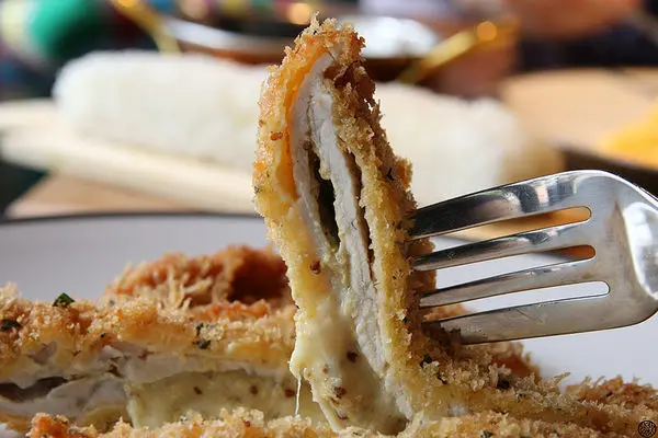 菜單上有寫他們用的是雞胸肉,吃起來口感相當紮實,外皮也煎的香氣四溢、酥脆好吃,這道是鬆餅太太點的,所以只分到一小塊。