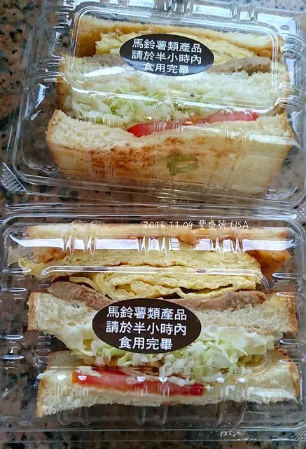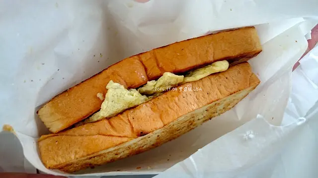 吐司裡頭有抹上花生醬,而且是有顆粒的花生,個人覺得喜歡,因為讓整個三明治的味道更好。