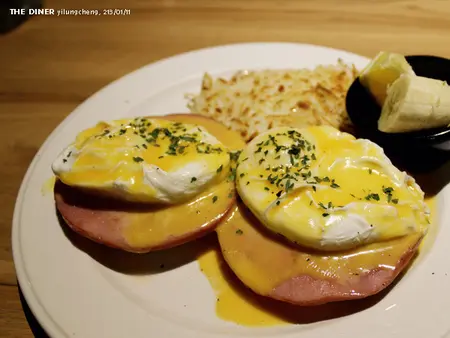 班尼迪克蛋是由水煮蛋/加拿大火腿/英式muffin組成,(如果有其它口味則是將火腿取代)