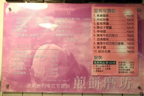 煎餅磨坊不是賣你服務或是用餐環境,所以它的價錢才能如此親民。食物的價值大多會因服務及用餐環境所定,但先決條件是食物要好吃。總結,坐在那裏吃真的會流汗...